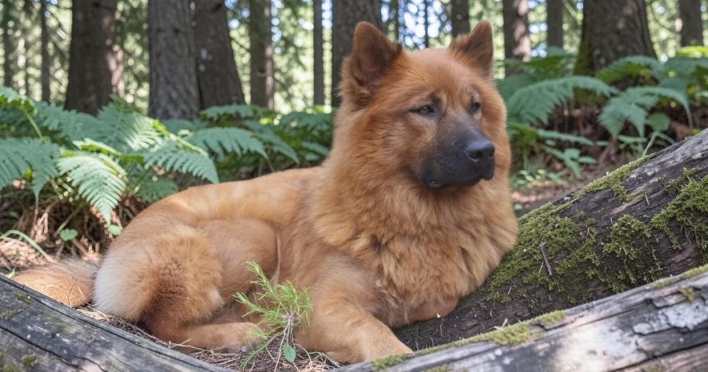 Volta, femelle eurasienne de 3 ans, elle est sociable avec les autres chiens, les chats nous ne savons pas.